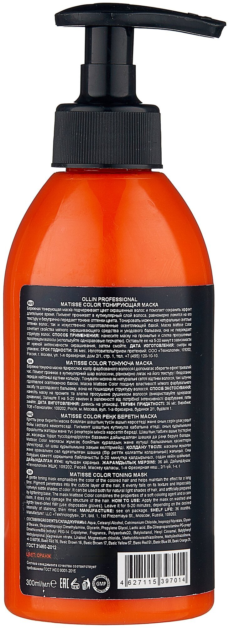 OLLIN Professional Matisse Color Orange - это тонирующая маска для волос, которая подчеркивает и поддерживает насыщенность цвета окрашенных волос на протяжении нескольких недель.