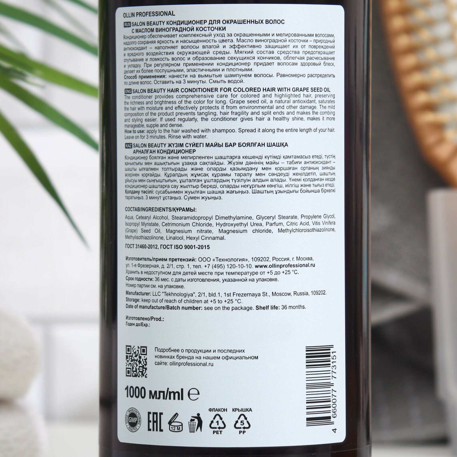 Кондиционер для окрашенных волос с маслом виноградной косточки 1000мл OLLINPROFESSIONAL питает корни волос, насыщает кожу головы микроэлементами и витаминами, обеспечивает ее максимальное увлажнение, регулирует секрецию сальных желез, уменьшает чрезмерное потоотделение (снижает эффект «мокрой головы») и стимулирует рост волос.