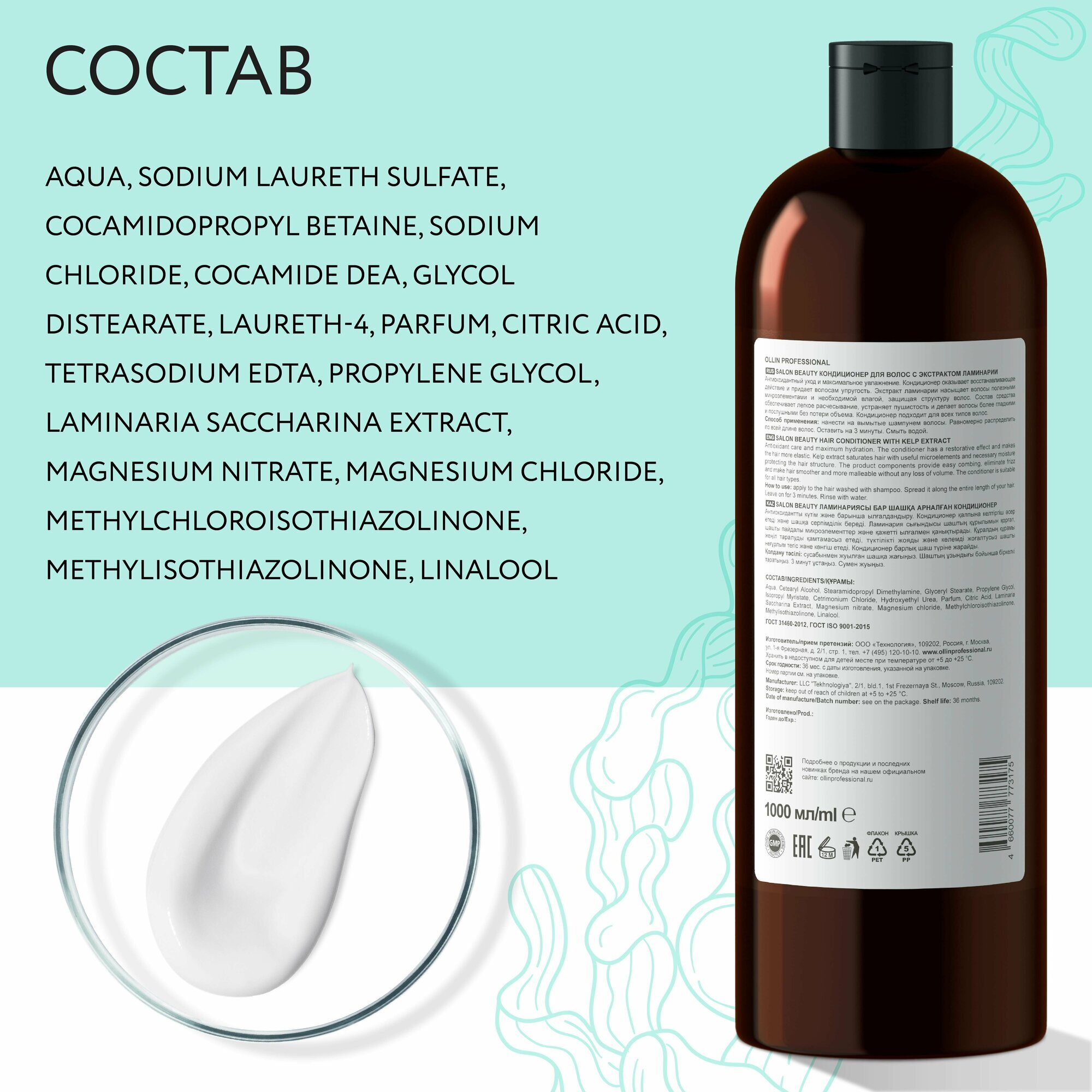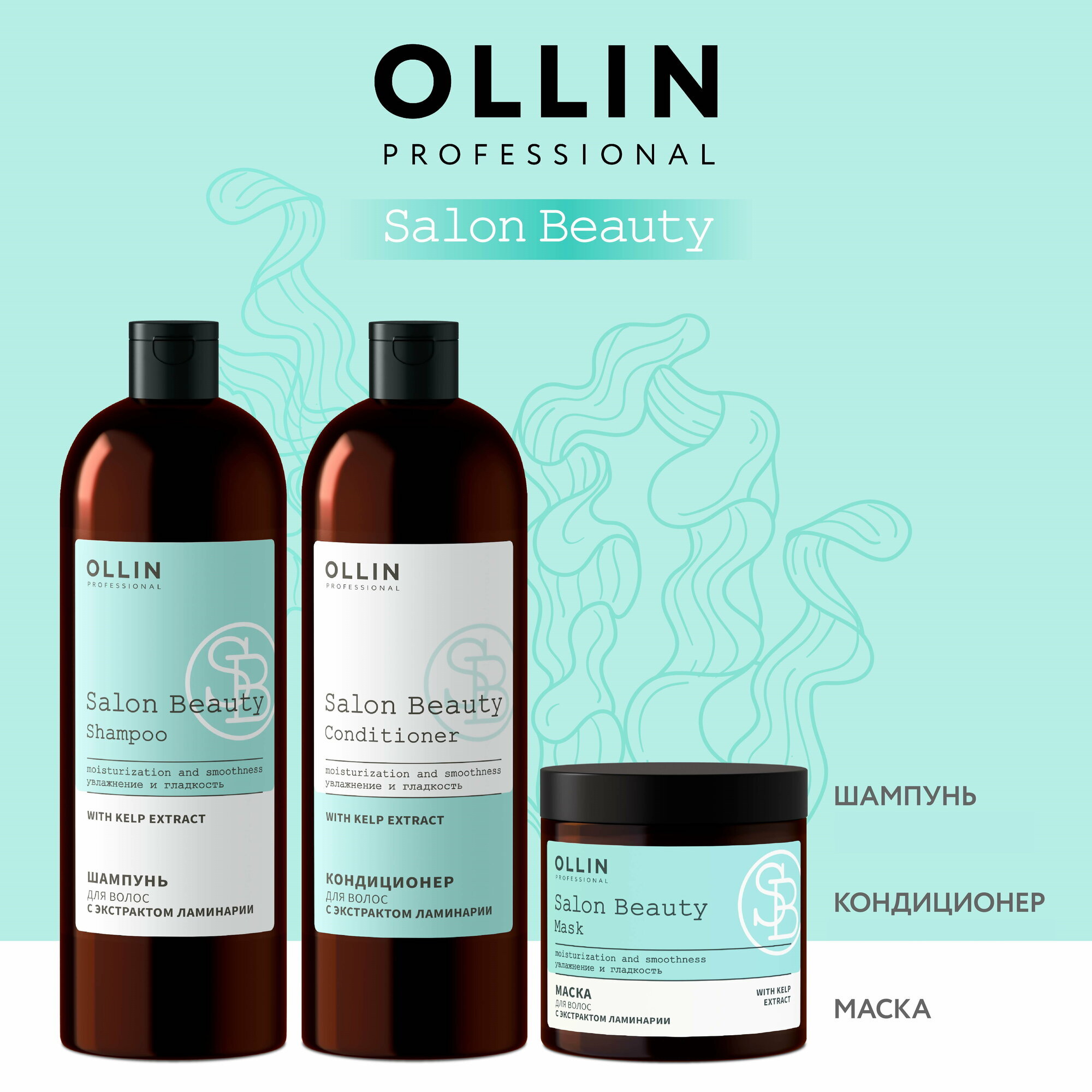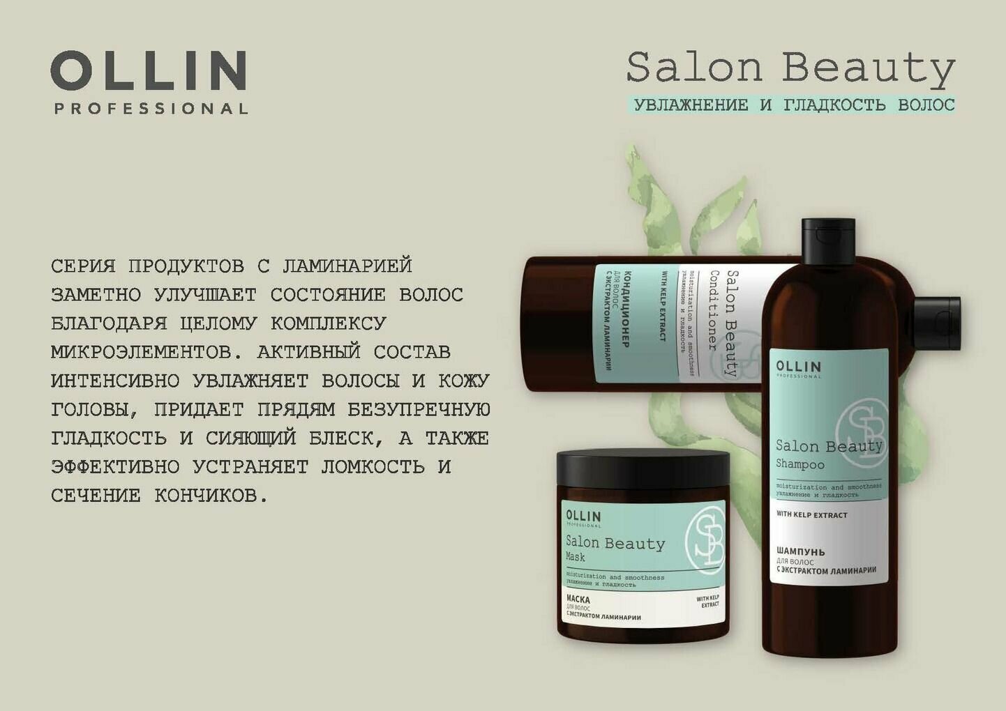 Кондиционер для волос OLLIN PROFESSIONAL SALON BEAUTY с экстрактом ламинарии 1000мл - это профессиональное средство для глубокого увлажнения и защиты волос.