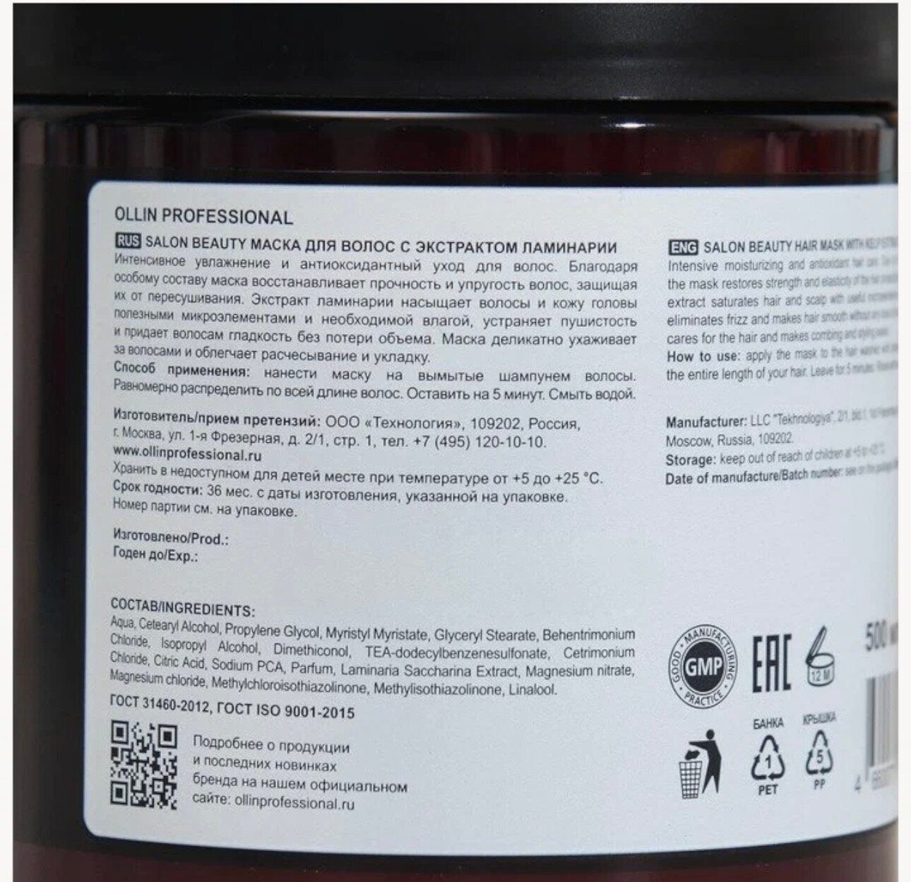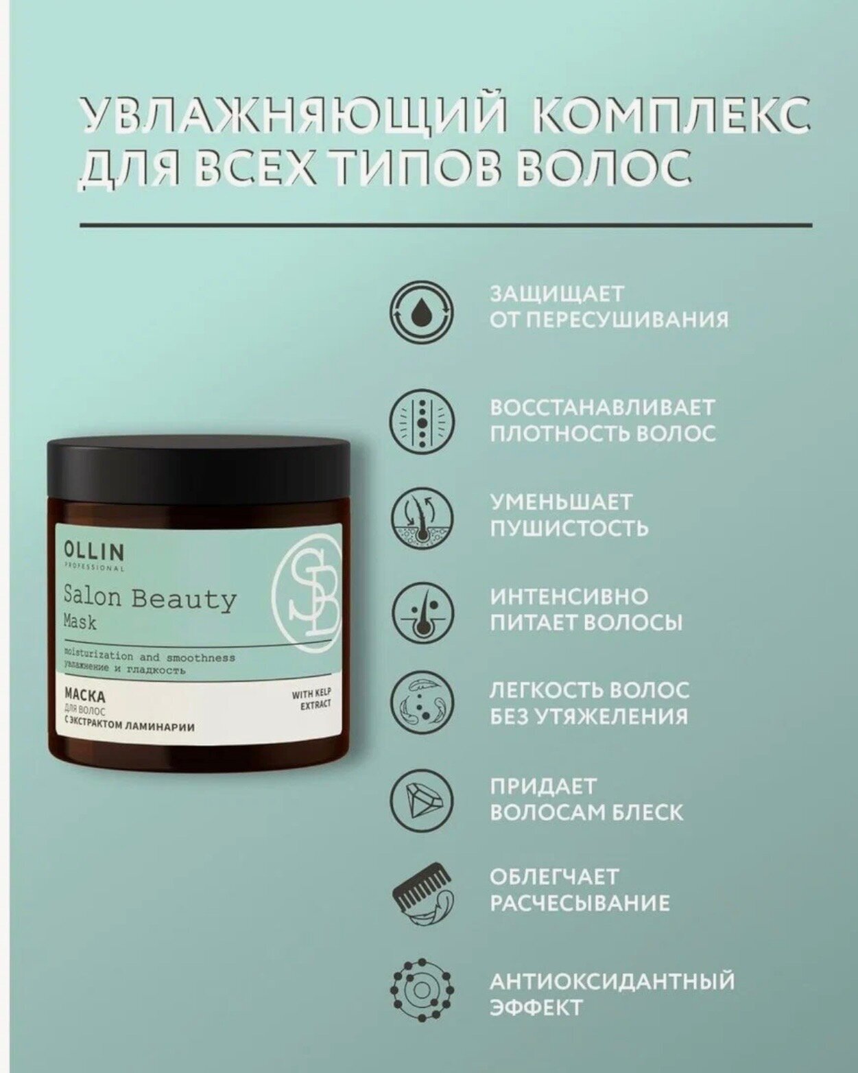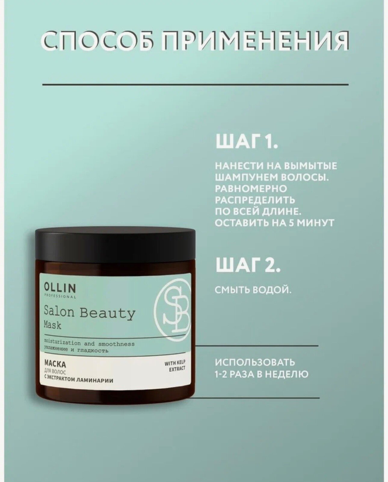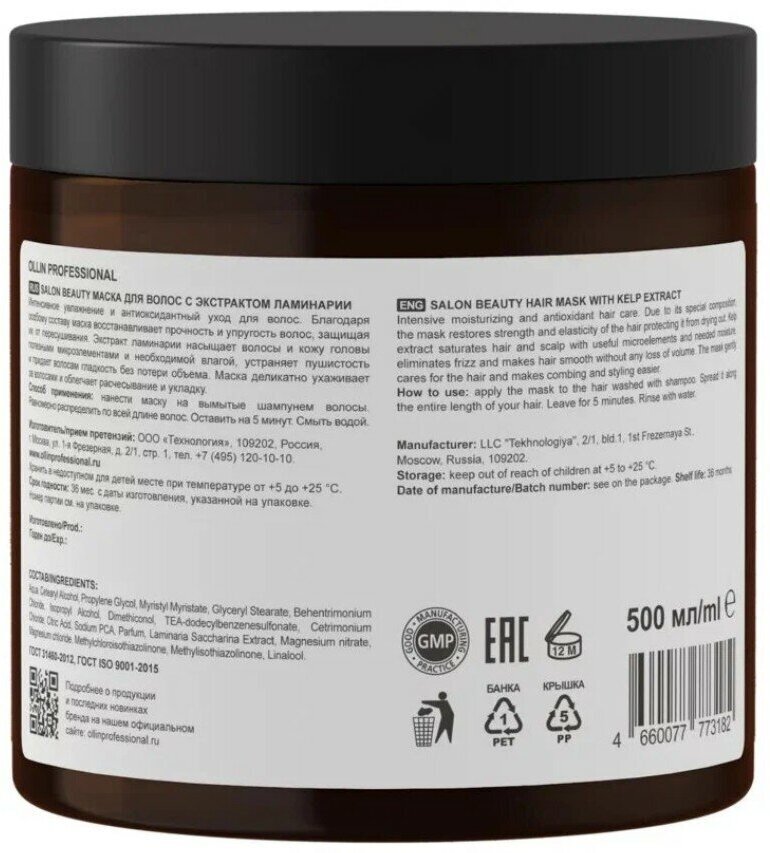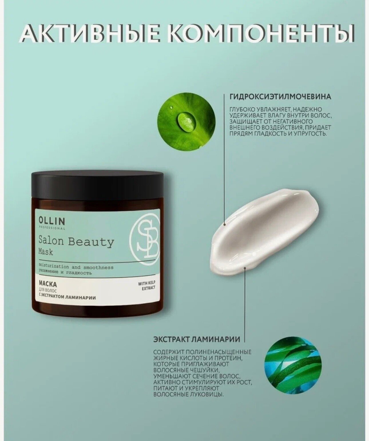 Маска салон бьюти оллин с экстрактом ламинарии 500мл глубоко увлажняет, надежно удерживает влагу внутри волос, защищает от негативного внешнего воздействия, придает прядям гладкость и упругость.
