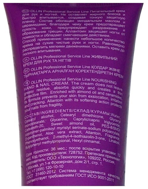 Питательный крем для рук и ногтей OLLIN SERVICE LINE подходит для всех типов кожи, включая чувствительную, жирную, сухую и комбинированную. Он не содержит парабенов и подходит для женщин.