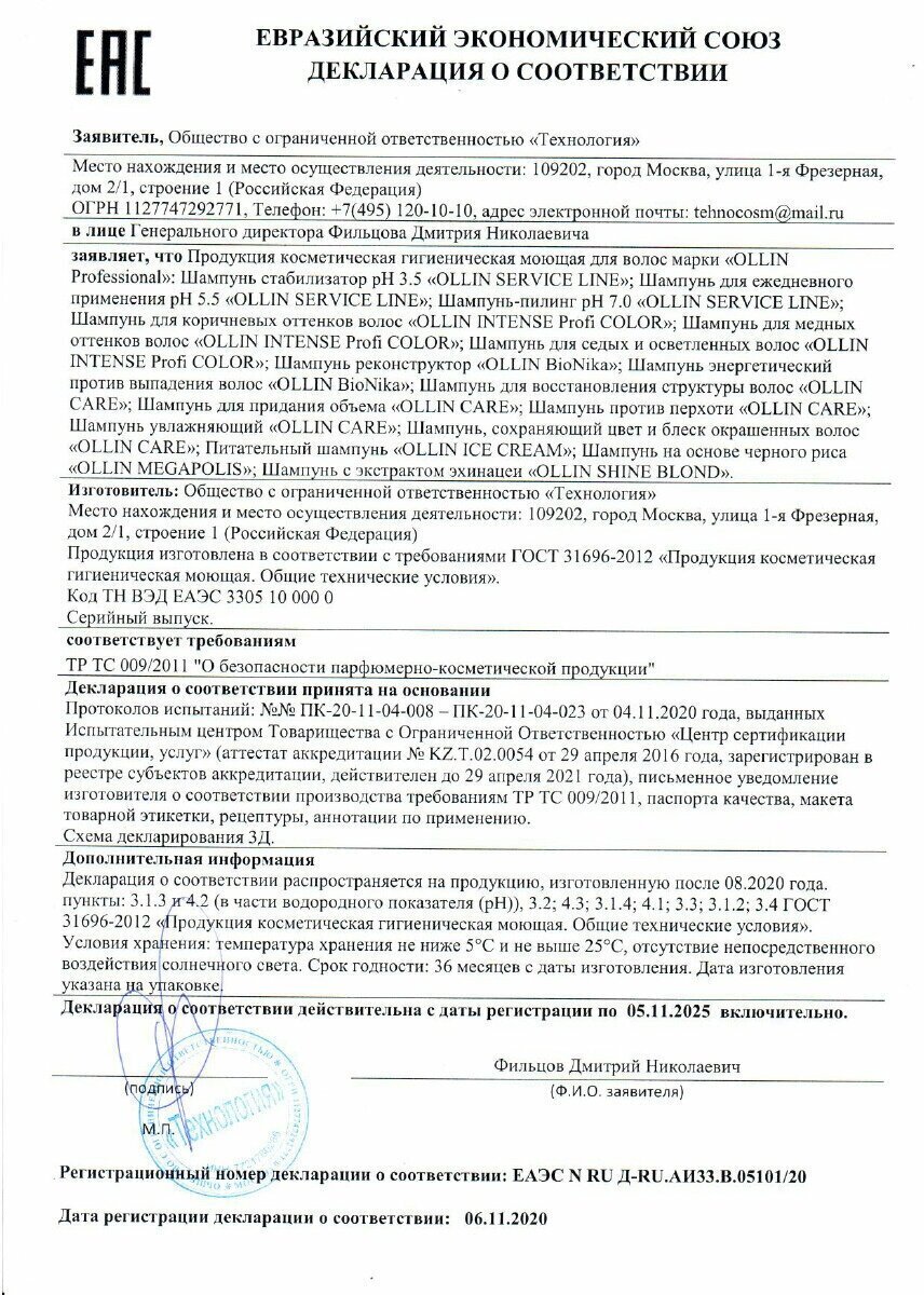 OLLIN SERVICE LINE - это профессиональная линейка косметики, разработанная в Израиле. Она подходит для всех типов волос, включая окрашенные и жирные.
