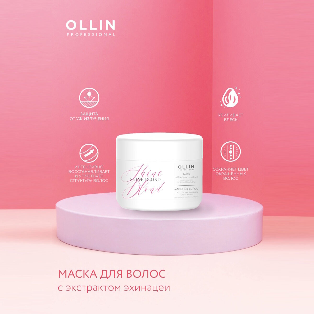 Маска с экстрактом эхинацеи OLLIN Shine Blond Echinacea Mask - это средство с легким серебристым оттенком, способствующее восстановлению, увлажнению волос и уплотнению их структуры. Маска создана специально для осветленных волос - она усиливает их блеск и обеспечивает защиту от ультрафиолетовых лучей. Среди активных компонентов следует отметить не только экстракт эхинацеи, но и гидролизованный кератин, а также серицин. Маска наносится по всей длине волос и выдерживается на протяжении 3-5 минут, после чего смывается. Если волосы сильно повреждены, то средство можно дополнить тепловым воздействием. Маска с экстрактом эхинацеи OLLIN Shine Blond Echinacea Mask - это средство с легким серебристым оттенком, способствующее восстановлению, увлажнению волос и уплотнению их структуры. Маска создана специально для осветленных волос - она усиливает их блеск и обеспечивает защиту от ультрафиолетовых лучей. Среди активных компонентов следует отметить не только экстракт эхинацеи, но и гидролизованный кератин, а также серицин. Маска наносится по всей длине волос и выдерживается на протяжении 3-5 минут, после чего смывается. Если волосы сильно повреждены, то средство можно дополнить тепловым воздействием. Маска с экстрактом эхинацеи OLLIN Shine Blond Echinacea Mask - это средство с легким серебристым оттенком, способствующее восстановлению, увлажнению волос и уплотнению их структуры. Маска создана специально для осветленных волос - она усиливает их блеск и обеспечивает защиту от ультрафиолетовых лучей. Среди активных компонентов следует отметить не только экстракт эхинацеи, но и гидролизованный кератин, а также серицин. Маска наносится по всей длине волос и выдерживается на протяжении 3-5 минут, после чего смывается. Если волосы сильно повреждены, то средство можно дополнить тепловым воздействием. Маска с экстрактом эхинацеи OLLIN Shine Blond Echinacea Mask - это средство с легким серебристым оттенком, способствующее восстановлению, увлажнению волос и уплотнению их структуры. Маска создана специально для осветленных волос - она усиливает их блеск и обеспечивает защиту от ультрафиолетовых лучей. Среди активных компонентов следует отметить не только экстракт эхинацеи, но и гидролизованный кератин, а также серицин. Маска наносится по всей длине волос и выдерживается на протяжении 3-5 минут, после чего смывается. Если волосы сильно повреждены, то средство можно дополнить тепловым воздействием.