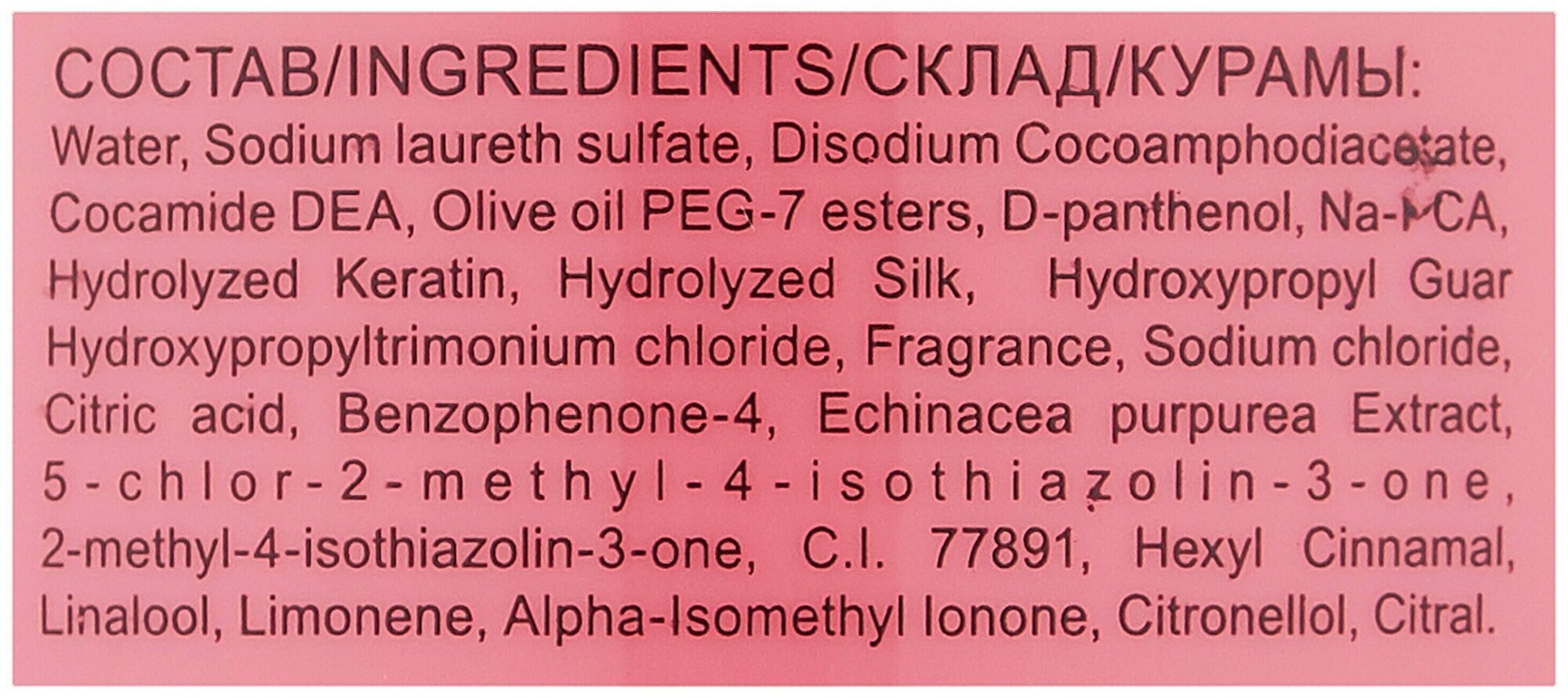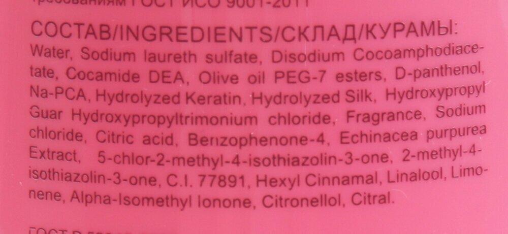 Состав: экстракт эхинацеи, серицин, гидролизованный кератин, D-пантенол.