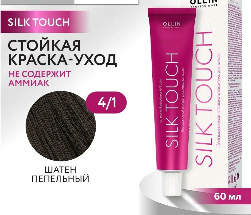 OLLIN SILK TOUCH - профессиональная система стойкого безаммиачного окрашивания, интенсивного тонирования, осветления волос и ухода после окрашивания. В основе красителя SILK TOUCH лежит уникальная ухаживающая формула с использованием масла виноградной косточки, что гарантирует максимально бережное окрашивание и при грамотном применении обеспечивает надежное покрытие седины (до 70%). Благодаря своей консистенции краситель легко наносится на волосы и не стекает, а содержащиеся в его составе пигменты позволяют получить стойкий однородный и насыщенный оттенок.