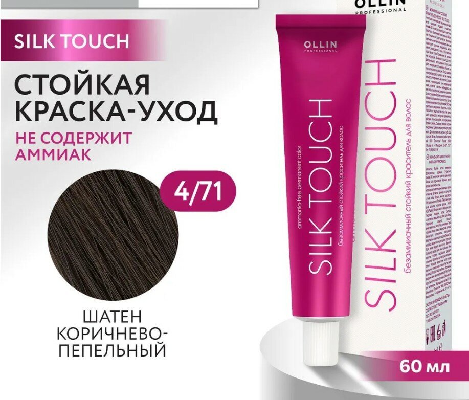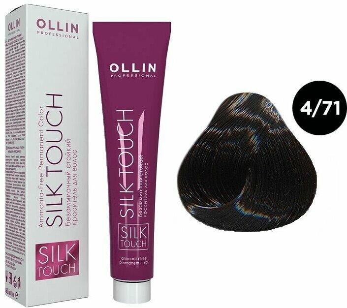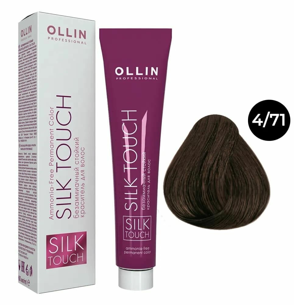 OLLIN SILK TOUCH 4/71 шатен коричнево-пепельный 60мл Безаммиачный стойкий краситель для волос