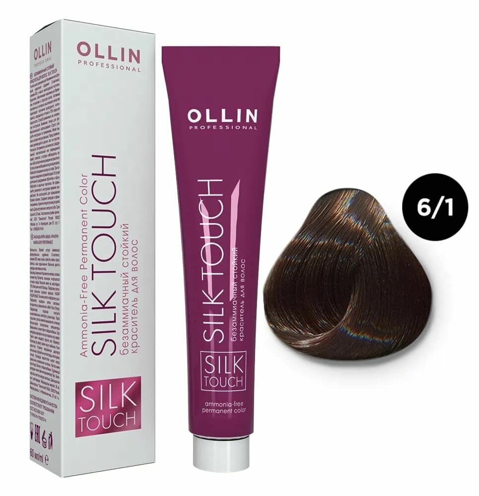 OLLIN SILK TOUCH 6/1 темно-русый пепельный 60мл Безаммиачный стойкий краситель для волос
