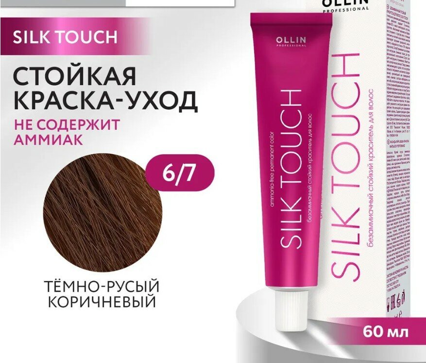 OLLIN SILK TOUCH 6/7 темно-русый коричневый 60мл - это профессиональное средство для окрашивания волос, которое обеспечивает бережное окрашивание, равномерное распределение пигмента и уход за волосами.