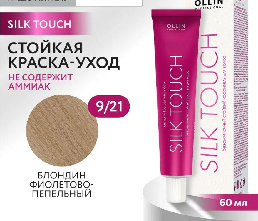 OLLIN SILK TOUCH 9/21 блондин фиолетово-пепельный 60мл Безаммиачный стойкий краситель для волос