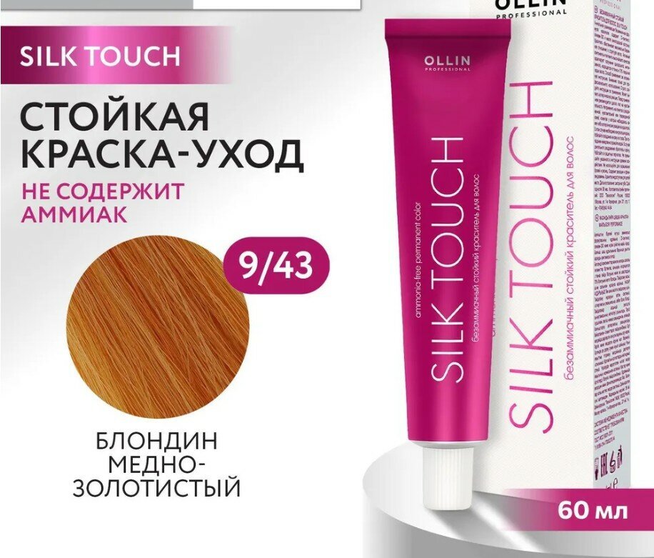 OLLIN SILK TOUCH 9/43 блондин медно-золотистый 60мл Безаммиачный стойкий краситель для волос
