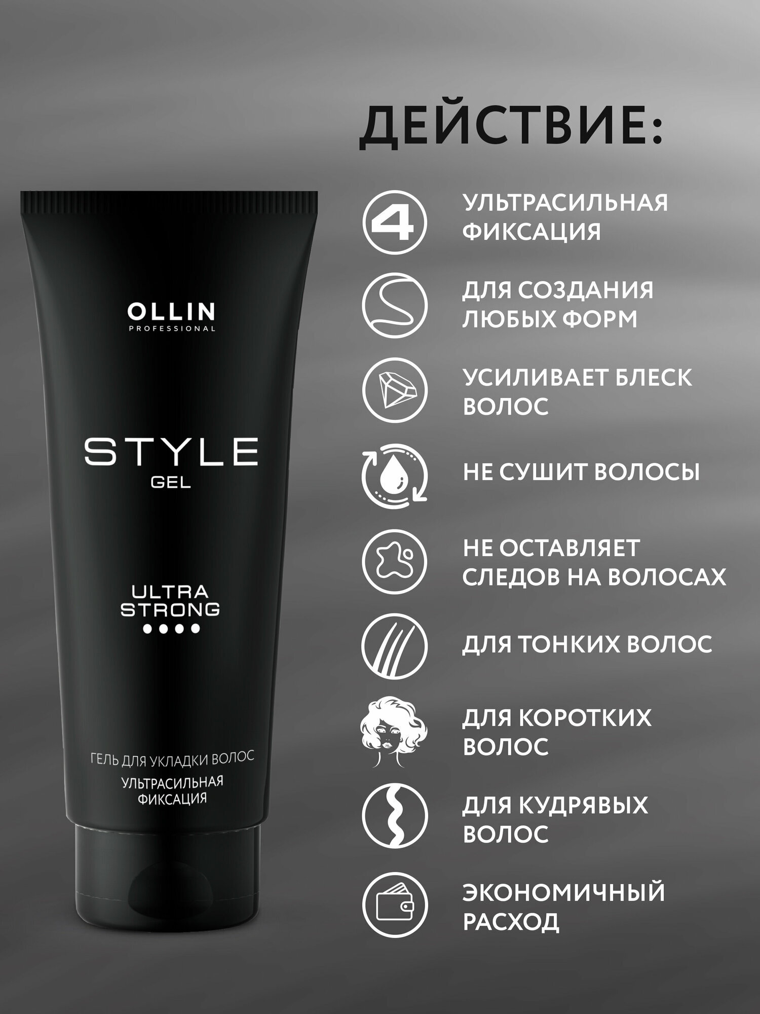 OLLIN PROFESSIONAL STYLE GEL - ультрасильный гель для укладки волос с эффектом увлажнения и блеска. Гель отлично подходит для создания креативного образа и подчеркивает индивидуальность любой стрижки. Гель можно использовать на сухих и влажных волосах, придавая им экстрасильную фиксацию и сохраняя естественную форму завитков. Он подходит для всех типов волос, включая вьющиеся и кудрявые. Благодаря уникальному составу, гель ухаживает за волосами и обеспечивает их блеск и увлажнение. Способ применения: нанесите гель на влажные или сухие волосы, создайте неповторимый образ. Объем: 200мл.