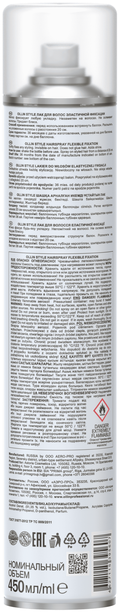 Лак для волос эластичной фиксации OLLIN STYLE 450 мл - это профессиональное средство для создания безупречной прически. Произведенный в России брендом OLLIN Professional, этот продукт зарекомендовал себя как надежное и качественное средство для укладки волос.