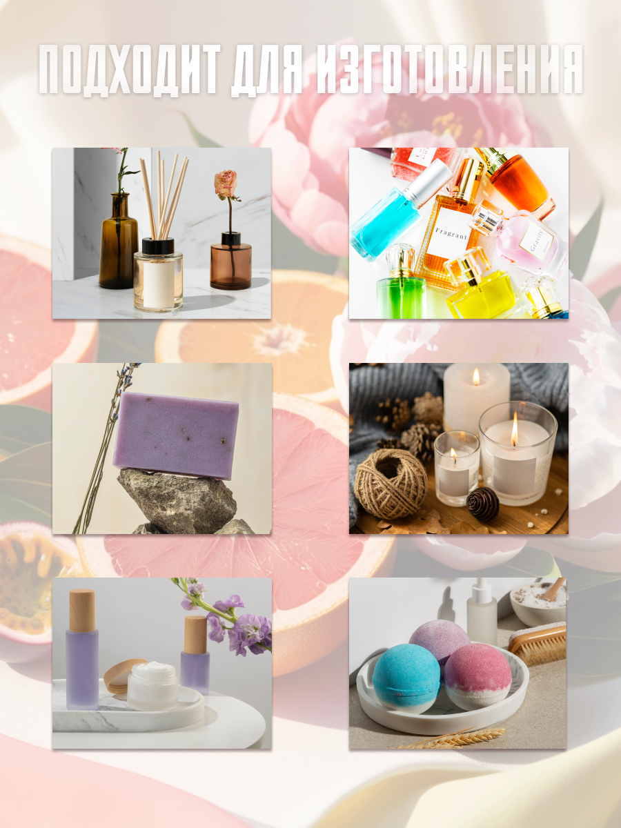 Отдушка не содержит парабенов и сульфатов, что делает ее безопасной для использования.