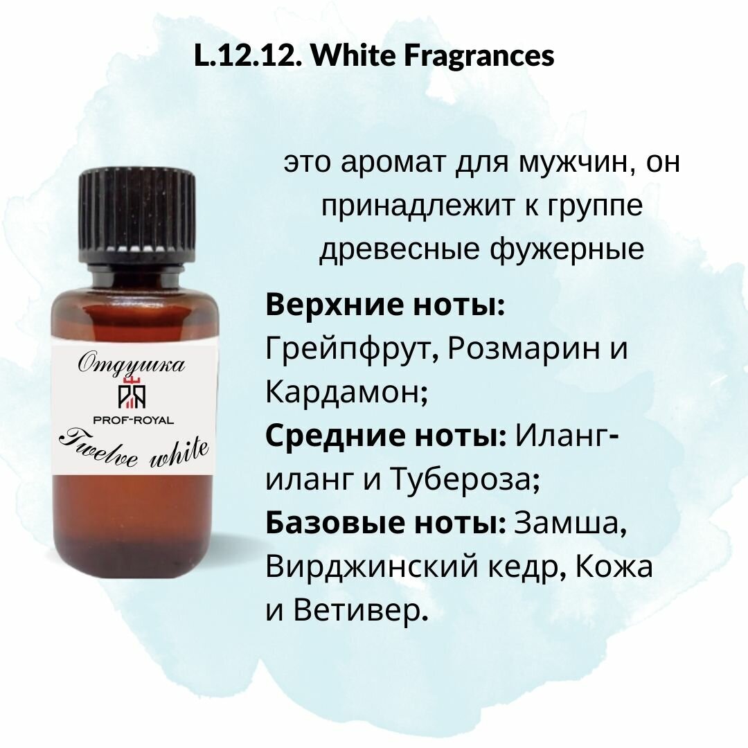 Отдушка Prof-Royal Twelve White не содержит парабенов и сульфатов, что делает ее безопасной для использования.