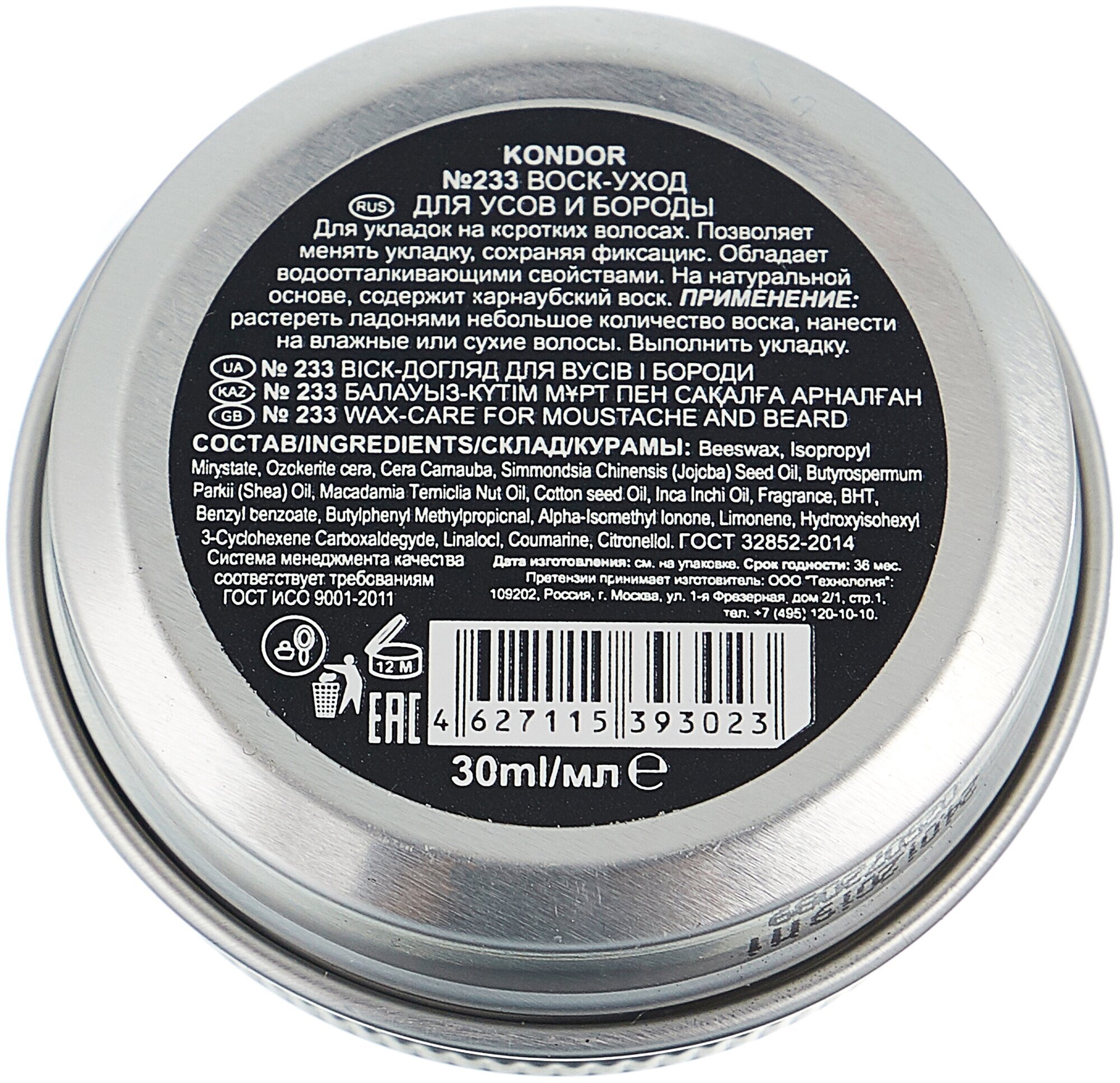 Воск-уход KONDOR Re Style подходит для всех типов кожи, включая жирную, сухую, комбинированную и чувствительную. Он не вызывает раздражения и легко смывается водой.