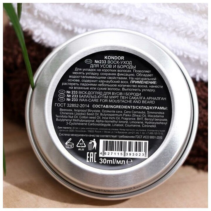 Воск-уход для усов и бороды KONDOR Re Style - это отличное решение для тех, кто хочет поддерживать свою бороду в аккуратном и ухоженном виде.