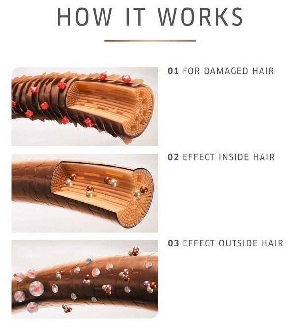Даже очень сильно поврежденные волосы восстанавливаются, приобретая гладкость, эластичность и устойчивость к ломкости.